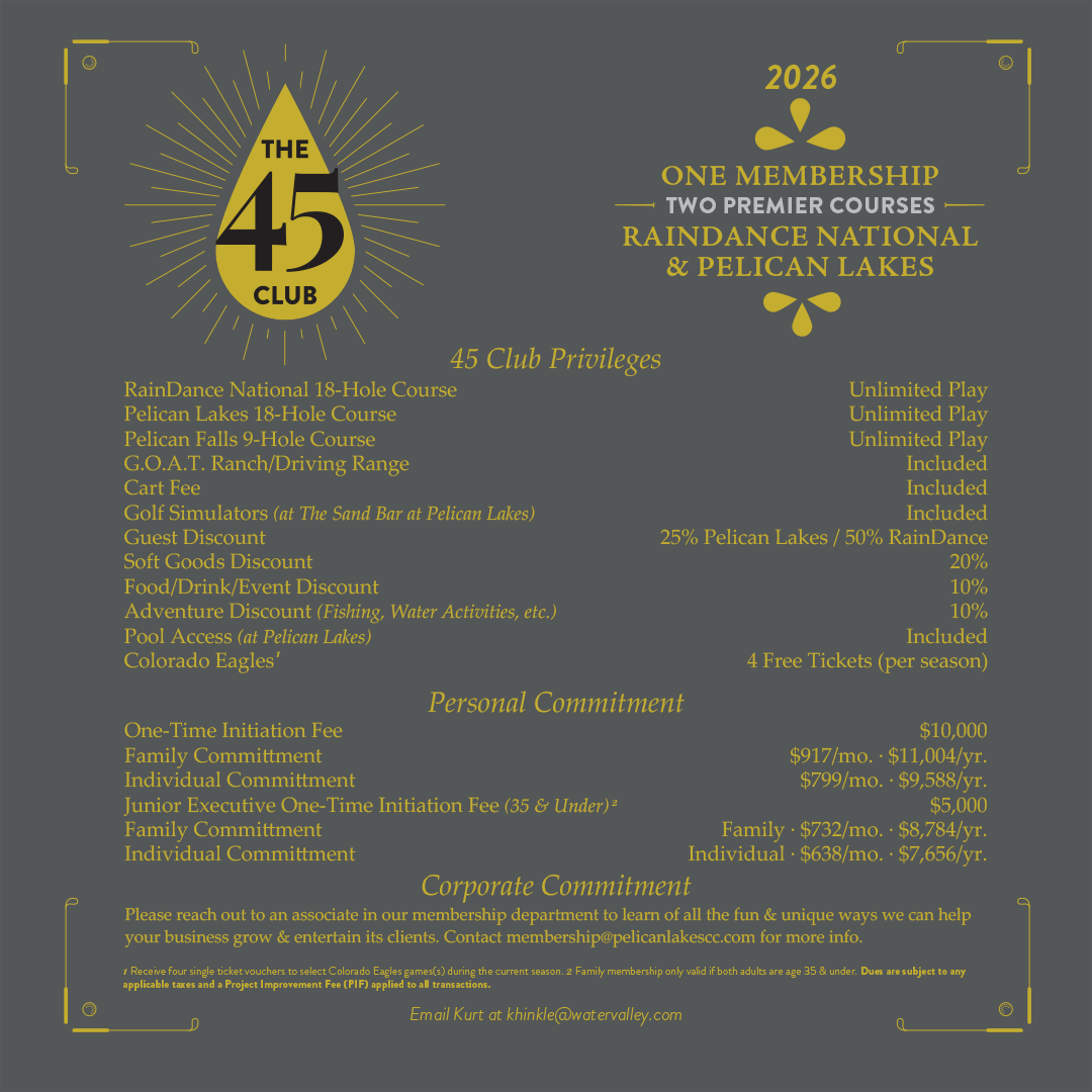 To inquire about joining The 45 Club, please email membership@pelicanlakescc.com